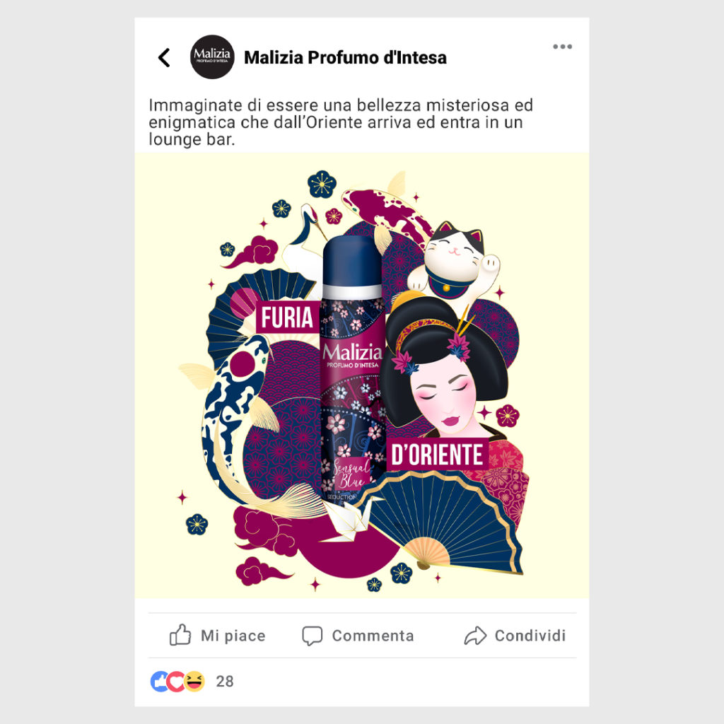 Malizia è un marchio storico ben noto ai consumatori. Un brand ombrello suddiviso in linee complete di prodotti per l’igiene personale, come i deodoranti freschi e sensuali, e la cura della casa.